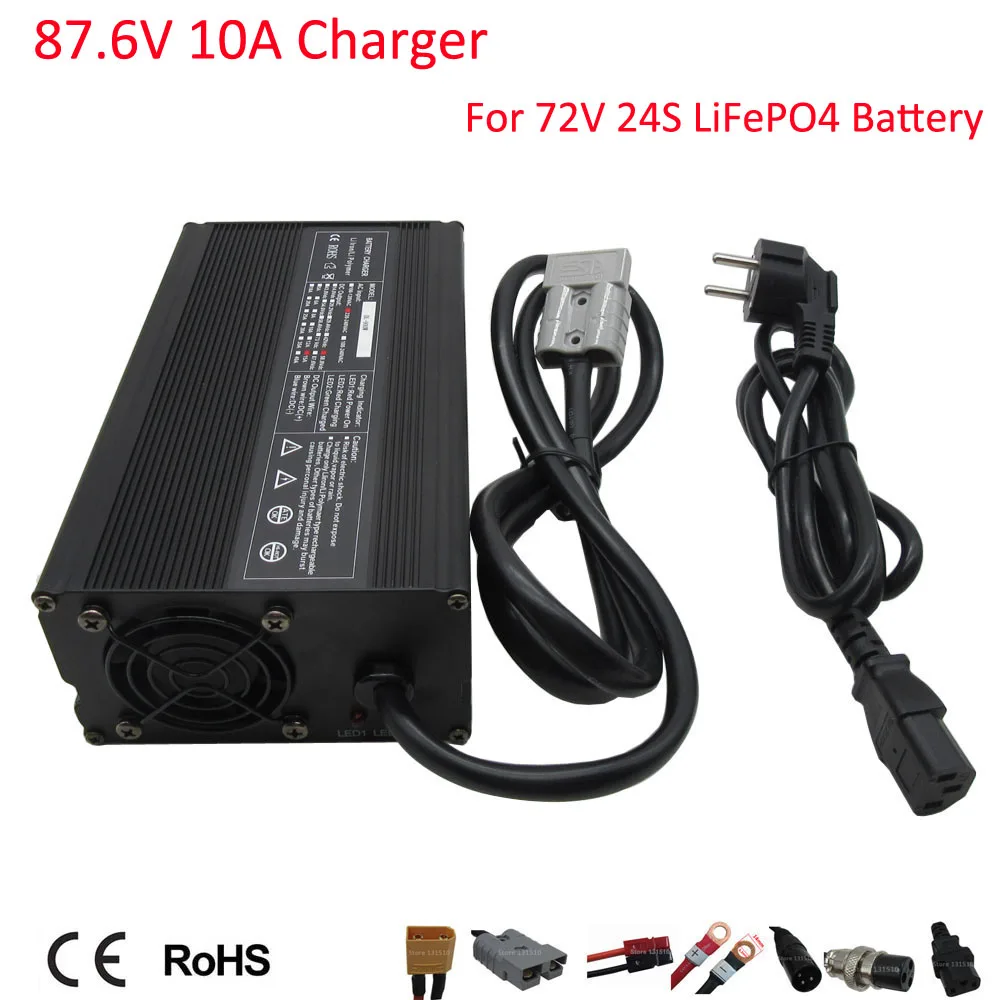 Discount 900W 72V 10A LiFePO4 Fast Charger Output 87.6V 10A Used for 72V 24S LFP LiFePO4 Battery Pack Ebike forklift motorcycle