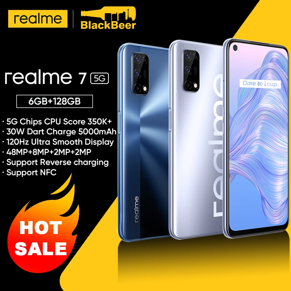 Special Offer realme 7 Dual 5G Mobile Phone 6.5 Inch 120Hz Screen Dimensity 800U CPU Smartphone Android 10 6GB 128GB Cellphone 30W Dart Charge with Free Worldwide Shipping!