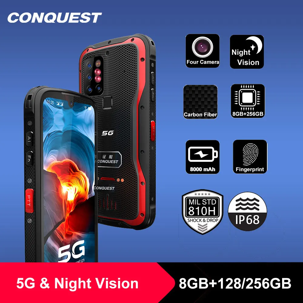 Special Offer 2021 New CONQUEST S20 5G Night Vision Smartphone IP68 Waterproof 48MP Four Camera 8GB RAM 256GB ROM Global Version Mobile Phones with Free Worldwide Shipping!